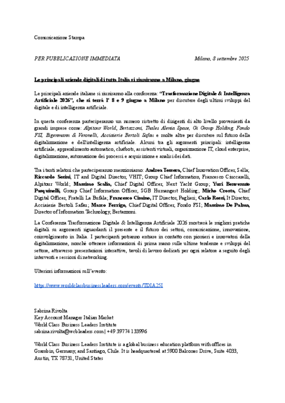 Comunicati Stampa